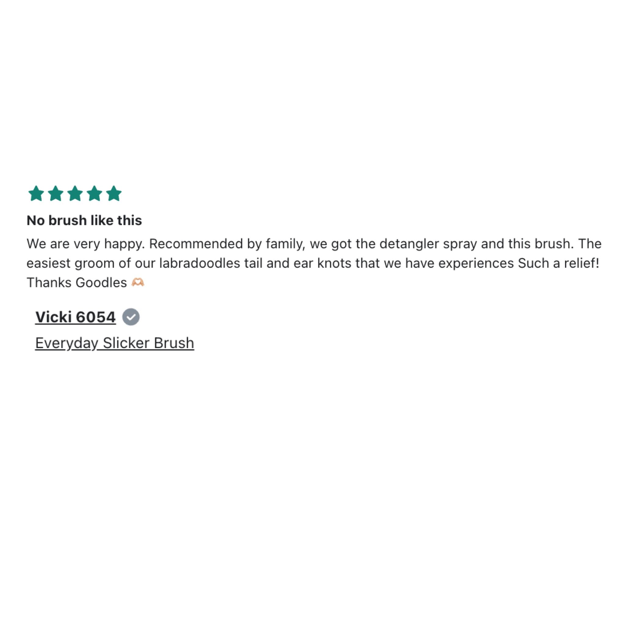 "I have now tried many different brands of brush for my puppy's long, prone to dreadlocks hair. This one is so superior to the others. Coupled with the G'oodles detangling spray, it gently helps return his hair to a soft, tangle free 'do. Tempo is a much happier dog on grooming day since I started using this brush!"