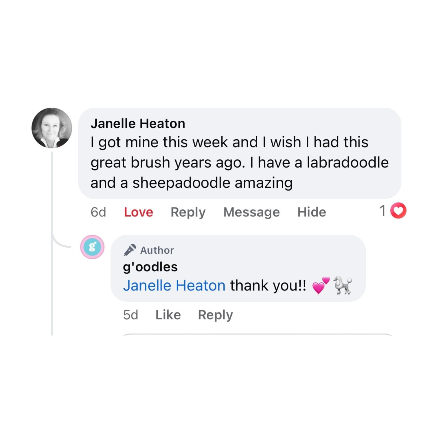 "I have now tried many different brands of brush for my puppy's long, prone to dreadlocks hair. This one is so superior to the others. Coupled with the G'oodles detangling spray, it gently helps return his hair to a soft, tangle free 'do. Tempo is a much happier dog on grooming day since I started using this brush!"